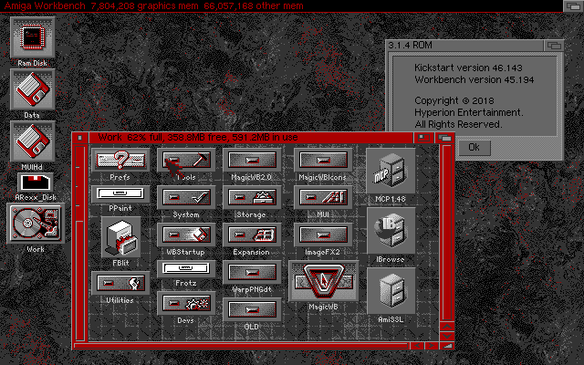 Gothbench I Redux (or gothbench1r for short) is a radically revamped reimagining of the original Gothbench for the OCS and ECS Amiga platforms (read: Amiga 3000 and earlier). It consists of 72 background patterns downconverted from the newer Gothbench installments, and the original 8-color palette. The background on this page is an example. (Horror.iff) Suggested for best results: